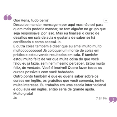 Se não se sentir mais segura, mais confiante ou mais respeitada em sala, você pode pedir o reembolso completo com apenas um clique.